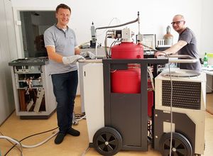 Liquid helium is also something we work with at LOT. We have just installed a basic but highly efficient medium-pressure recovery system. It collects and stores helium from an aged but running SQUID magnetometer. Up to now we have maintained nearly all of the used helium (recovery rate > 90 %). We will be able to use the SQUID without any further purchase of liquid helium. Minor losses are recovered from gas cylinders.